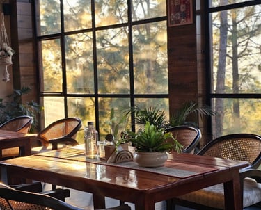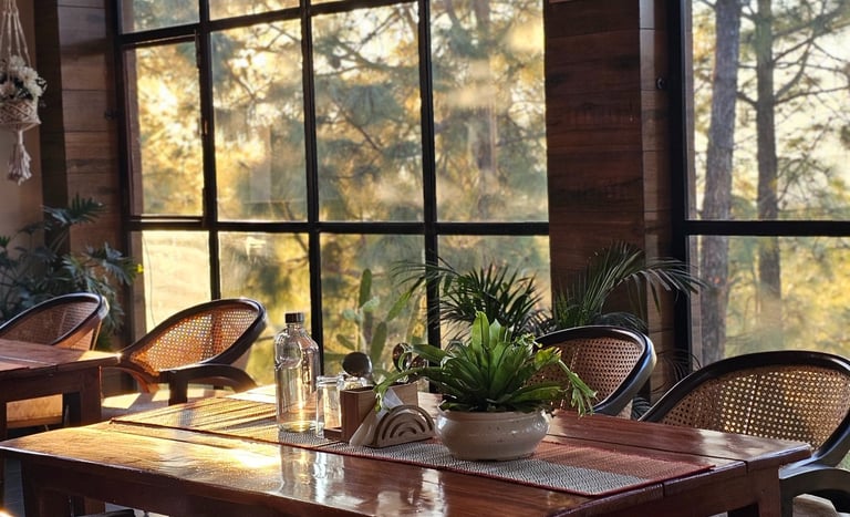 "Savor local and global flavors at ilika Resorts’ indoor & outdoor restaurant in Pauri Garhwal, offering stunning views, fresh ingredients, and a cozy ambiance."